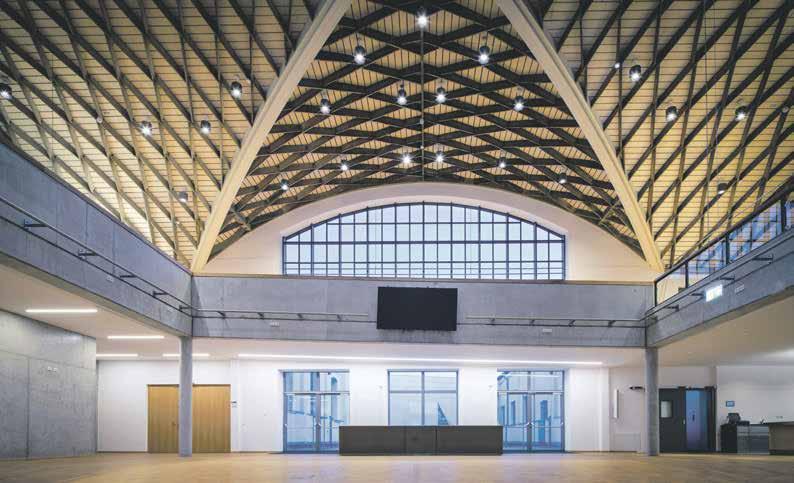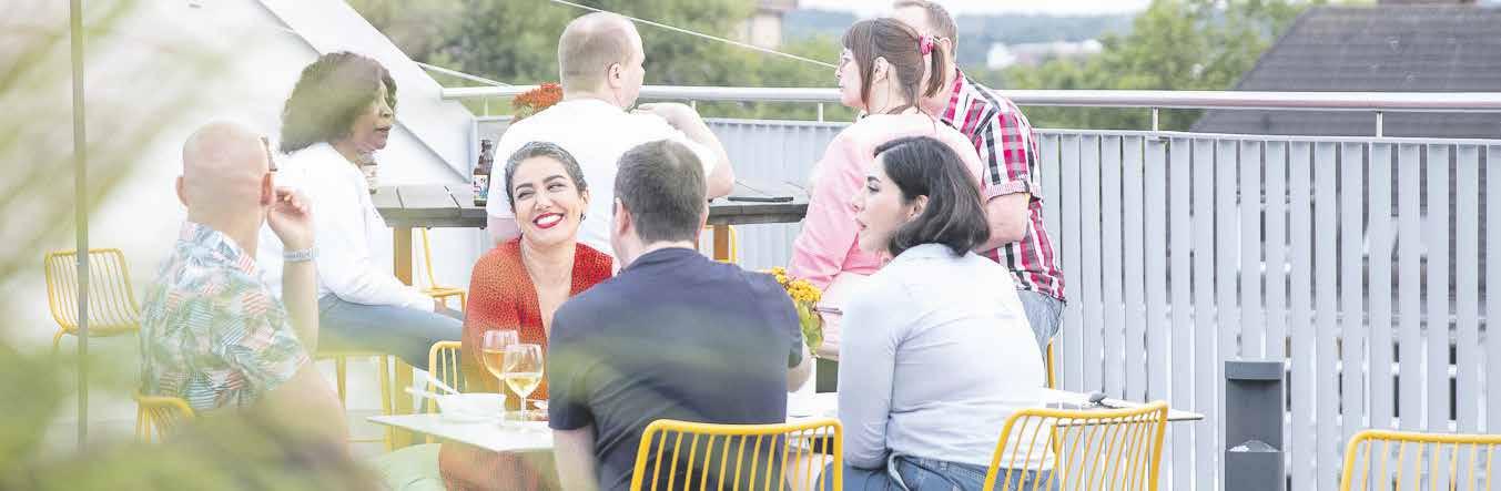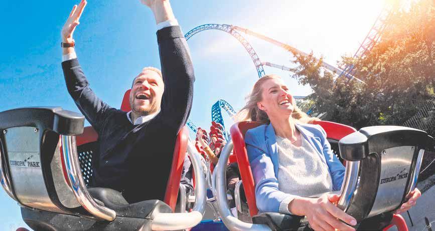 Teams zusammenschweißen“, sagt Isabel Schneider, Sales Manager Events, „Seifenkistenrennen, GPS-Rallye, Floßbau oder Whiskey- Tastings – das Spektrum reicht von regionalen Firmenausflügen bis zu internationalen Off sites im KaribikStil.“ Die Nähe zum BER erleichtert dabei auch Anreisen aus dem Ausland. Draußen ergänzt ein 35.000 Quadratmeter großes Areal das Angebot, mit Strömungskanal, Rutschen und Sportplätzen