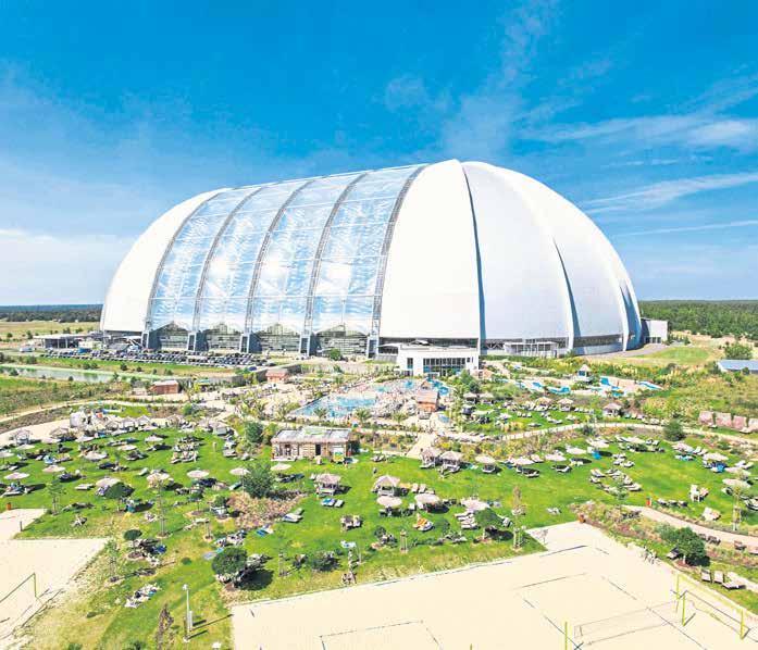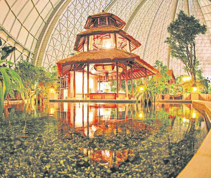 Die Wahl der Location entscheidet heute mehr denn je über den Erfolg eines MICE-Events. Gefragt sind nicht nur moderne Räume, sondern Orte, die selbst zum Erlebnis werden –und wo konzentriertes Arbeiten und pures Urlaubsfeeling ineinandergreifen: Am Vormittag ein produktiver Workshop, am Nachmittag gemeinsames Abtauchen in tropischer Wasserwelt oder sportliche Action im Freien, zwischendurch entspannte Pausen unter Palmen oder ein Spaziergang in weiter Natur. Eine Umgebung also, die aktive Teamevents ebenso ermöglicht wie ruhige Momente der Erholung – und damit Veranstaltungen schaff t, die Inhalte mit Emotionen verknüpfen und lang in Erinnerung bleiben. Nur eine Stunde südlich von Berlin fi ndet sich ein solcher Ort: Das Tropical Islands Resort gilt für Besucher längst als perfektes tropisches Urlaubsparadies und entwickelt sich zunehmend auch zum Hotspot für Veranstaltungsplaner. Denn es vereint das Beste aus zwei Welten: eine professionelle Event-Infrastruktur und ein Setting, das jede Veranstaltung unvergesslich macht. Zwischen Südseefl air und exotischer Kulisse entsteht eine Atmosphäre, die man in der MICEBranche so noch nicht kennt.