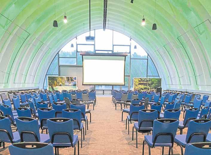 Mit dem jüngsten Ausbau wächst die Kapazität des Tropical Islands Resorts auf rund 3.000 Betten. Die Unterkünfte auf dem weitläufi gen Areal reichen vom klassischen Hotelzimmer bis zur Lodge im Amazonas-Stil oder Ferienhaus im Grünen. Ab 20 Personen lassen sich Seminare und Workshops in flexiblen Tagungsräumen organisieren, ausgestattet mit moderner Präsentationstechnik, Audio-Systemen und Highspeed-WLAN. Wer größer denkt, nutzt das Congress Centre, das Platz für bis zu 500 Personen bietet. Und im Activity Centre können Arbeitsphasen nahtlos in Basketball, Tischtennis oder Boccia übergehen. Besonders reizvoll: Auch die Tropenhalle mit Europas größtem Regenwald, Lagune und langem Sandstrand kann Teil besonderer Events vor einzigartiger Kulisse werden. Die Dimensionen sprechen ohnehin für sich: 360 Meter lang, 210 Meter breit, 107 Meter hoch – ein Bauwerk, das Maßstäbe setzt und Eventformaten und ungewöhnlichen Konzepten Raum gibt, die in klassischen Konferenzzentren kaum vorstellbar sind: von Public Events wie dem „Strong-Viking-Run“ bis Motorsportausstellungen. „Tropical Islands ist eine Bühne für Erlebnisse, die