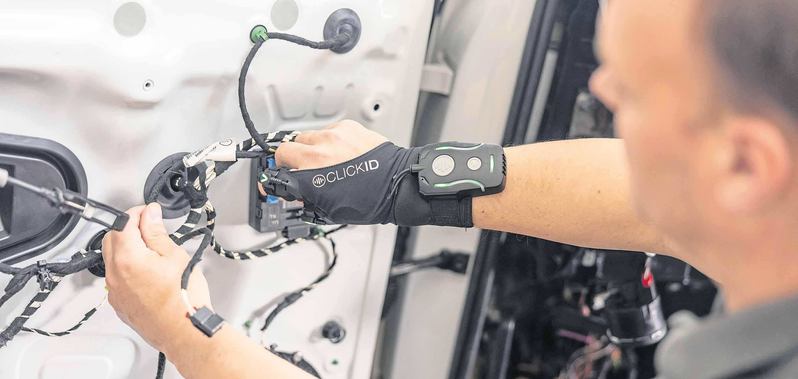 Wird es in Zukunft eine noch engere Kombination von Menschen, Maschinen und KI in der Produktion geben? Ja, auf jeden Fall. ClickID ist nur eine unserer entwickelten Innovationen. Es ist Teil unserer Strategie, sich als verlässlicher Partner für eine smarte Produktion aufzustellen. Wearables und auch der Einsatz von KI gewinnen zunehmend an Bedeutung, nicht nur in der Automobilindustrie, sondern auch in Logistik und anderen Bereichen, zum Beispiel durch AR-Brillen, die Mitarbeitende bei der Teileentnahme unterstützen. Moderne Industrie setzt darauf, die Flexibilität des Menschen mit intelligenten Systemen zu verbinden, was Produktivität, Qualität und Arbeitsplatzaufwertung steigert. Ein Zukunftsfeld ist die Zusammenarbeit mit kollaborativen Robotern („Cobots“), die über Sensorhandschuhe schnell und sicher angelernt werden können. Sie sind bereits heute in zahlreichen Bereichen etabliert und ihr Einsatz wächst rasant.
