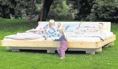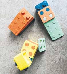 vorgegebene Anleitung bauen, konstruieren, klettern, balancieren und Dinge ausprobieren können.“ Die leichten, zugleich stabilen Bausteine aus expandiertem Polypropylen lassen sich ständig in ihrem Zweck variieren. Heute entsteht daraus ein Balancierpfad im Wohnzimmer, morgen eine kleine Sitzbank im Flur und übermorgen eine Matschküche im Garten. Bevor die Steine wieder zum Spielen ins Haus kommen, werden sie kurz mit dem Gartenschlauch abgespritzt oder drehen eine Runde in der Spülmaschine. Multifunktionsbretter aus Birken-Multiplex eröff nen dazu weitere Spielräume: Balancieren, Rutschen, Möbelbauen – alles ist mit nur einem Element möglich.