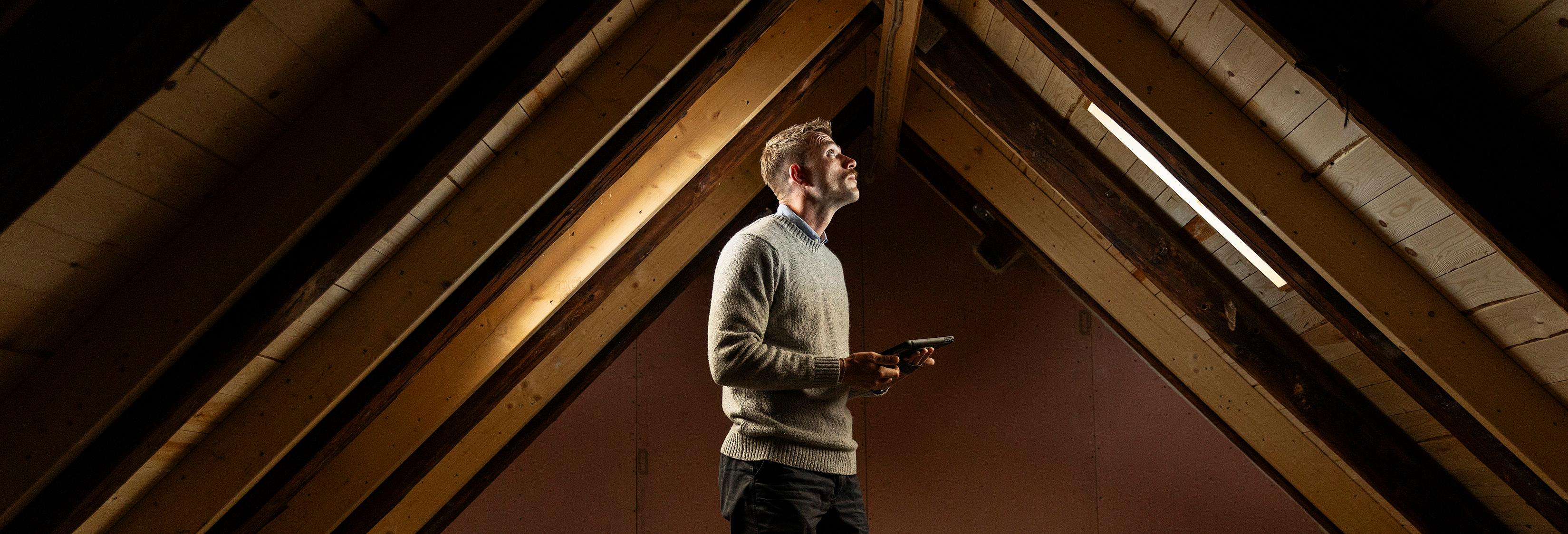 “Når man står i de tomme etager, kan man mærke, at huset er bygget til at holde. Det giver os nogle muligheder, vi sjældent har i nybyggeri,” siger projektudviklingschef Niels Blom.