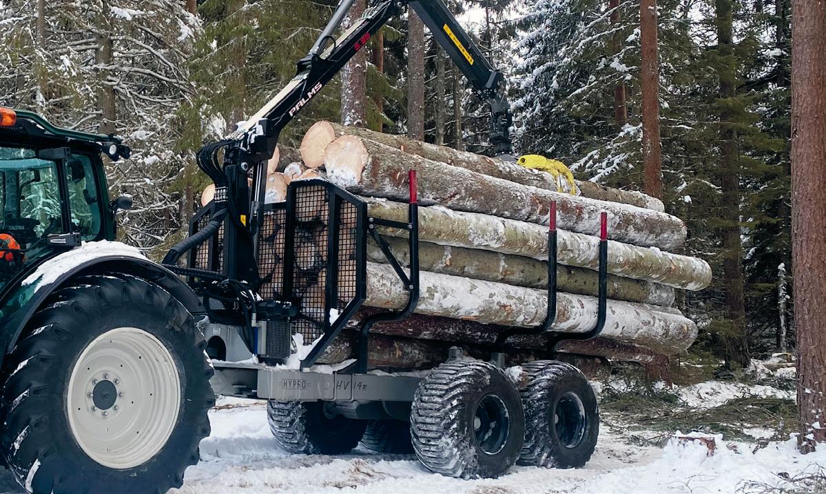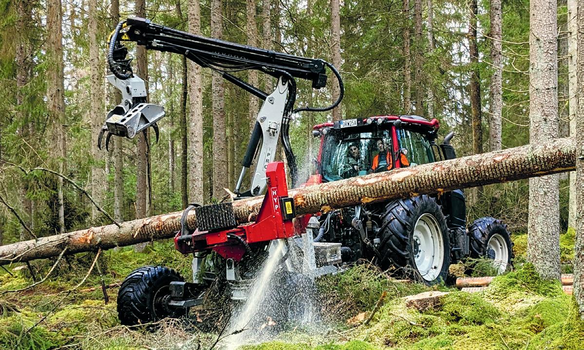 En råstark traktorprocessor med en arbetsradie på hela 280 grader. Processorn är en fristående, vagnsmonterad HYPRO 755 som enkelt monteras direkt på i princip vilken skogsvagn som helst – med ett lägre marktryck och lägre inköpspris som resultat.