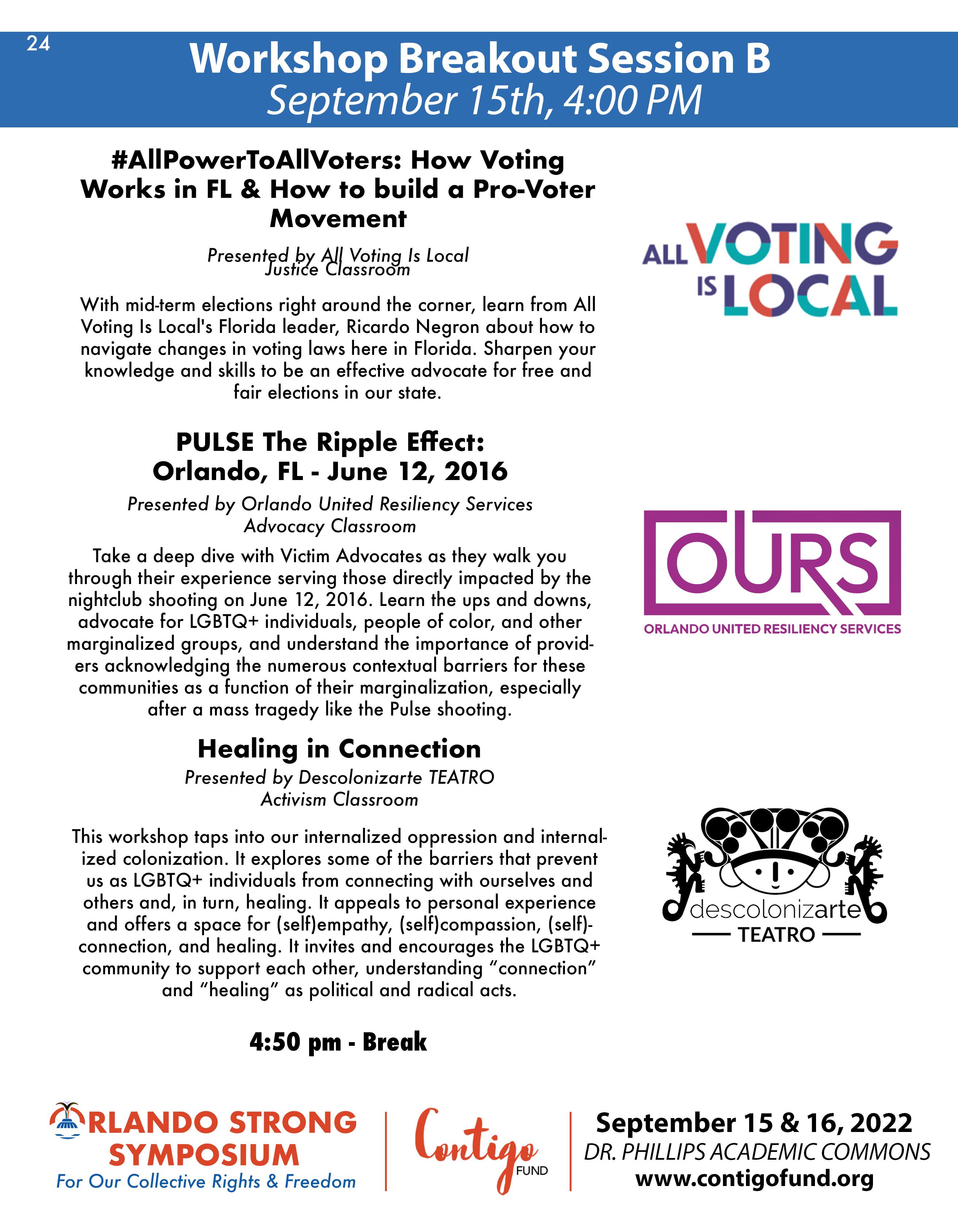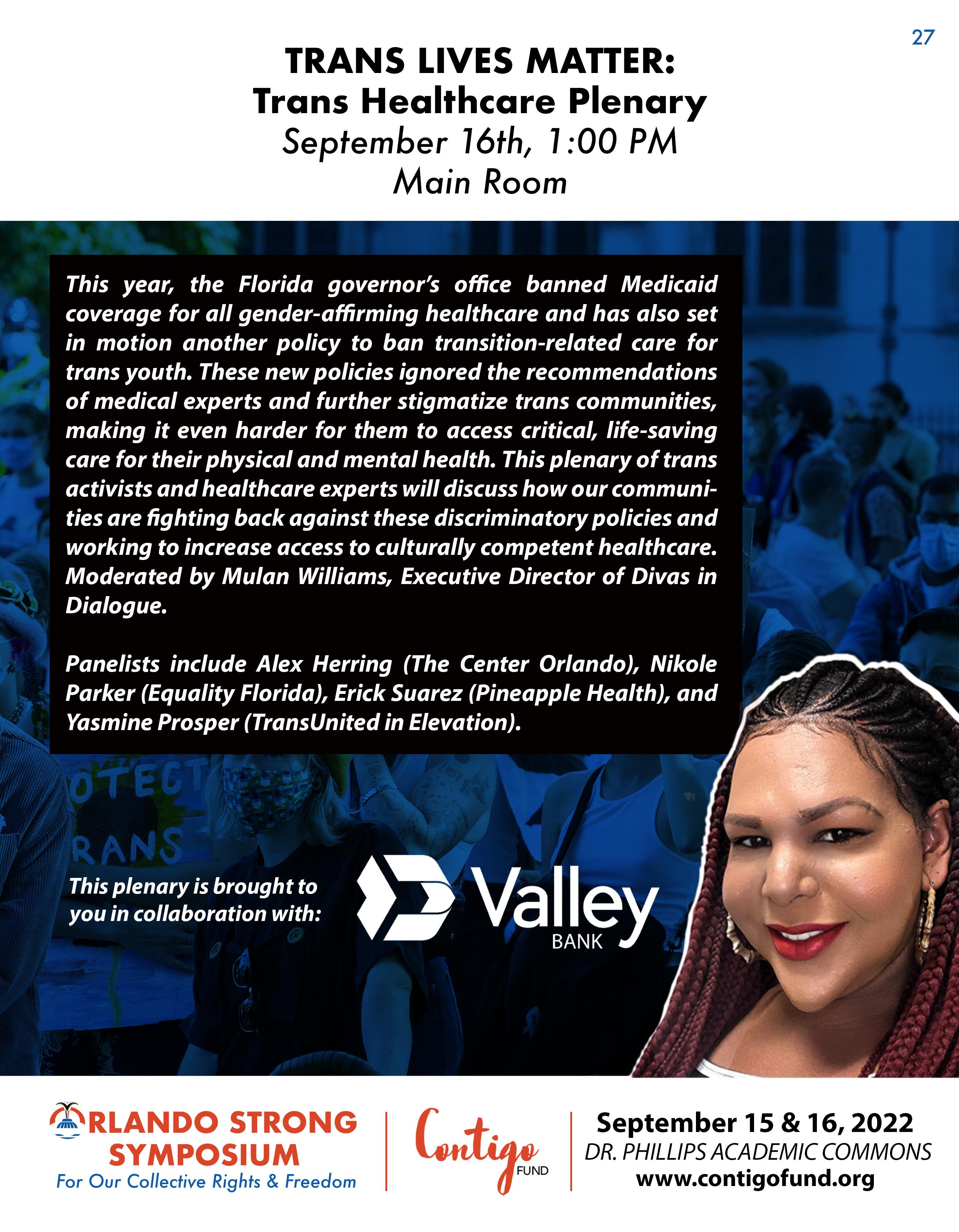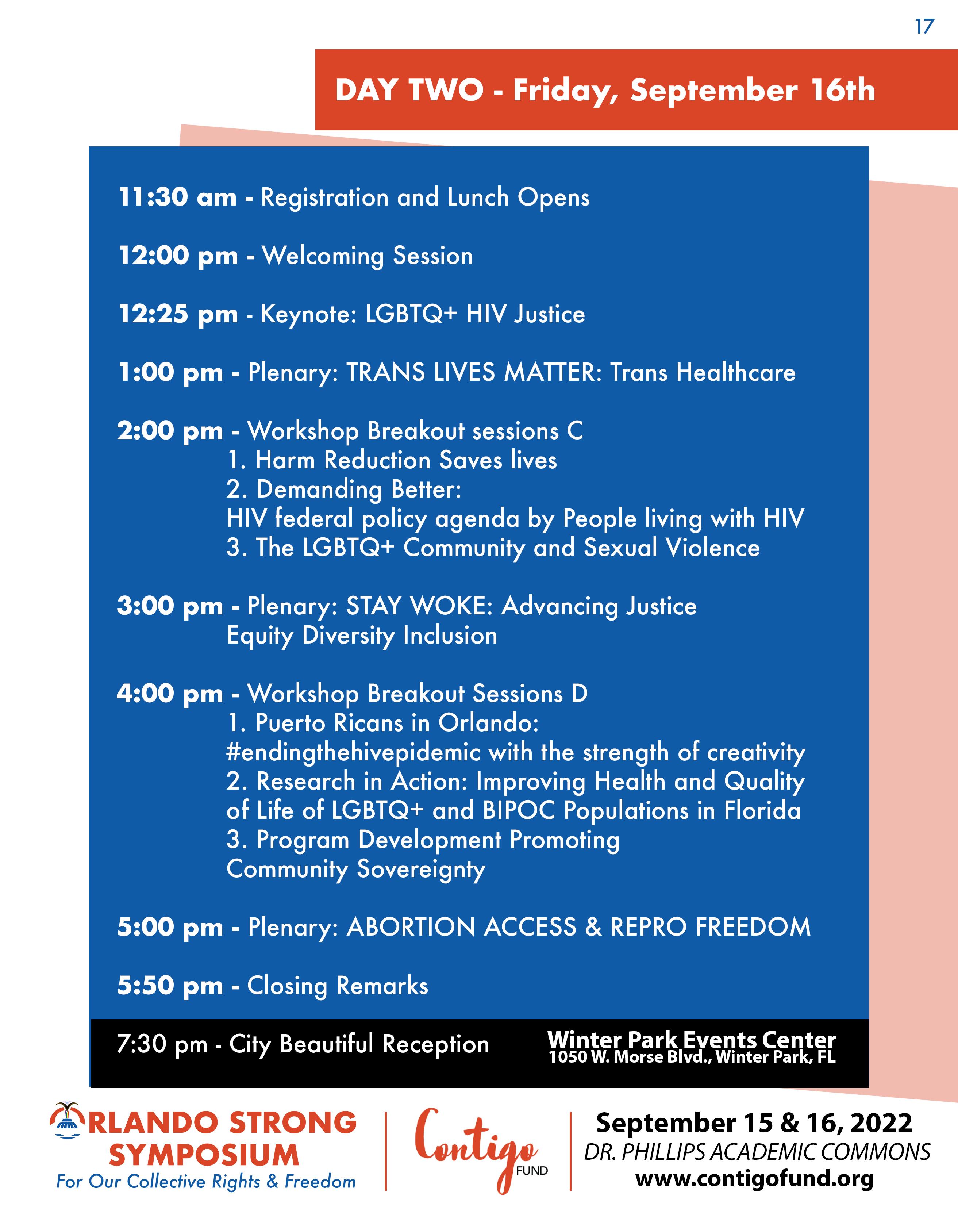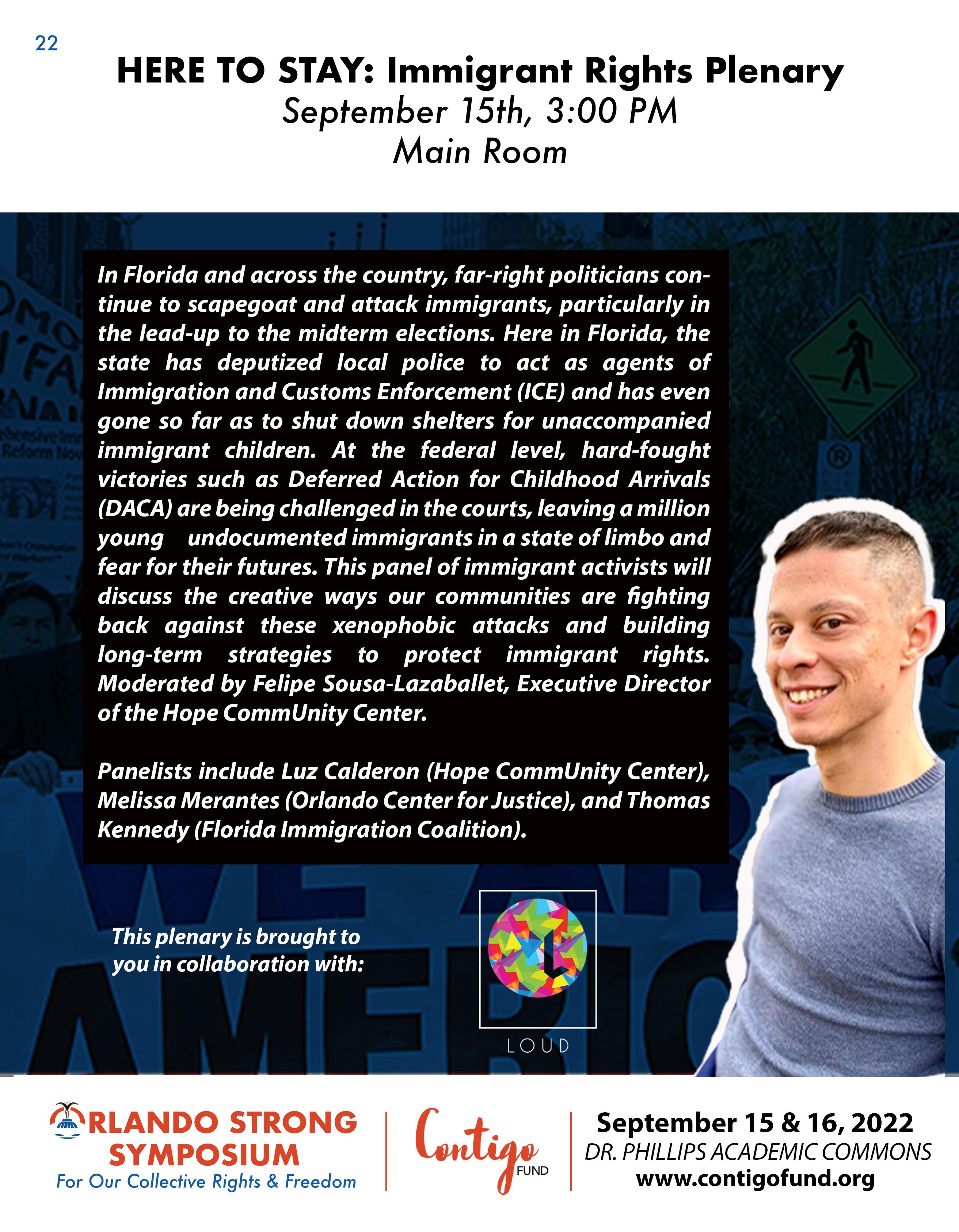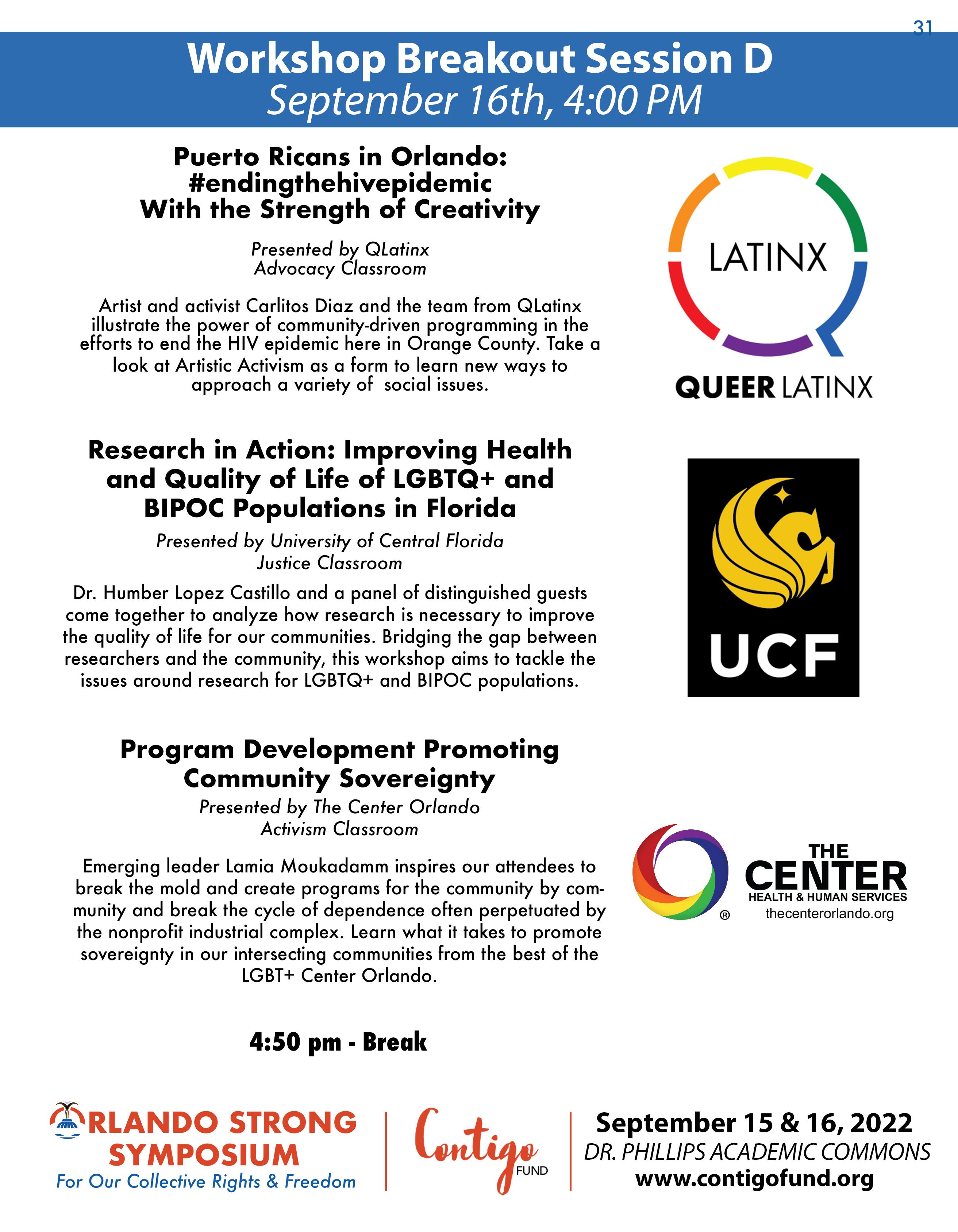 The Orlando Strong Symposium is an annual event that brings together leaders in local and state government and the non-profit, public, and private sectors of Central Florida. This year, we will host a hybrid symposium with panels from Sept 15 through Sept 16. The Symposium gives community members unparalleled access to these decision-makers and is a catalyst for change in the region. This year, the Orlando Strong Symposium looks at collective liberation with freedom for all. If you or your organization would like to help create the most impactful event of the year.