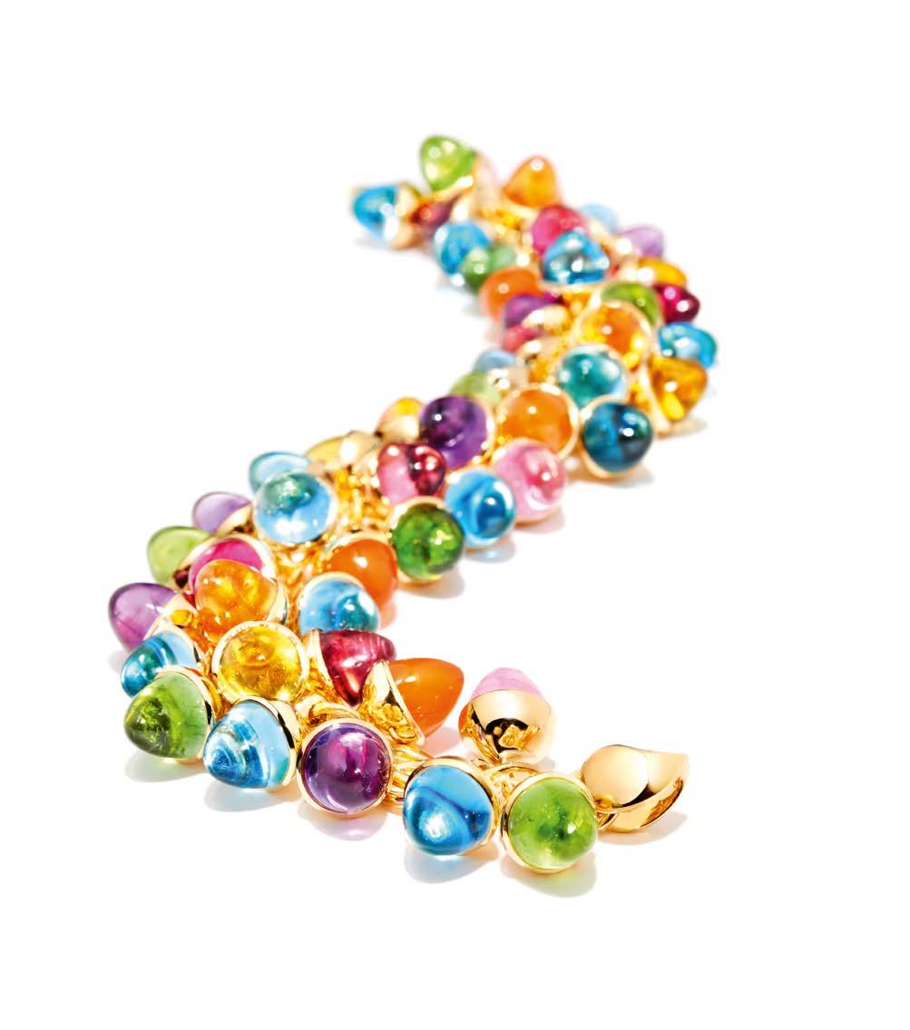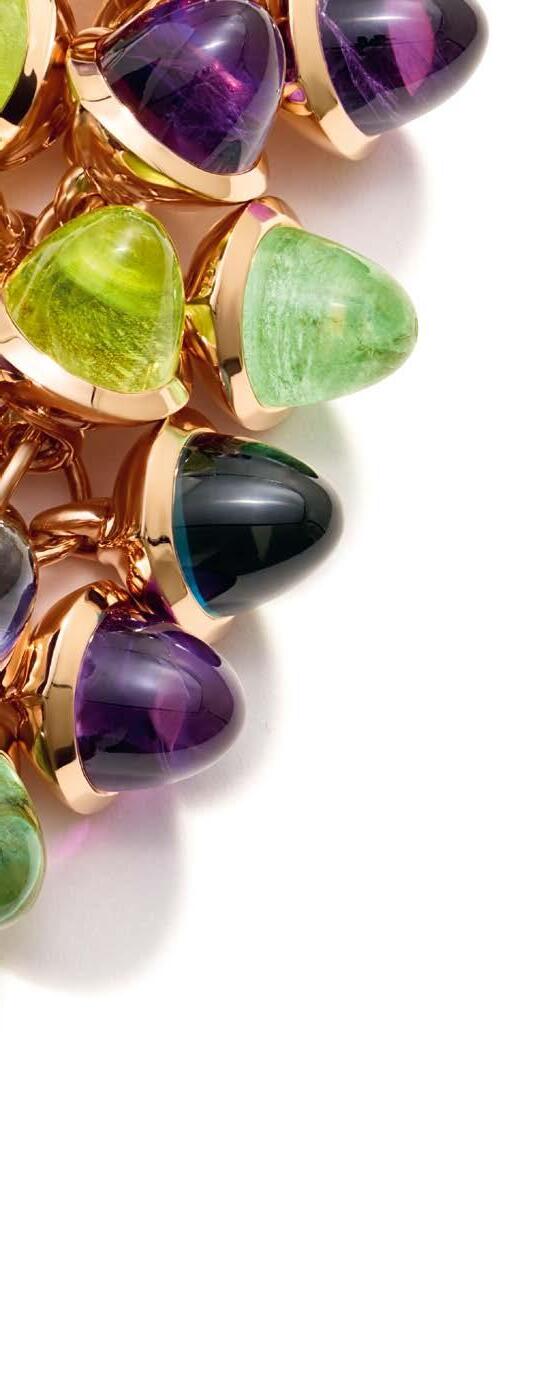The quintessential Color Story of TAMARA COMOLLI, ‘Candy’ features a vibrant mix of gemstones including Beryl, Amethyst, Carnelian, Mandarin Garnet, Topaz, Peridot, and pink and green Tourmaline, together symbolizing the pure joy of life.