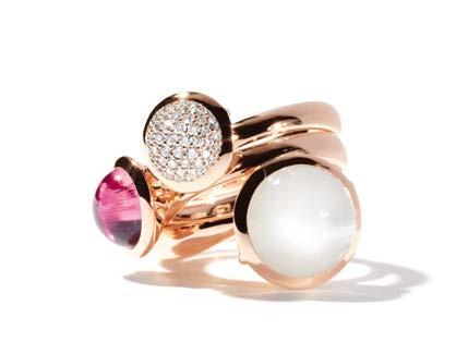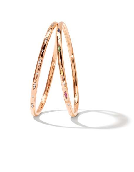 Feminine and soft, ‘Blush’ plays with a mix of beautiful Morganite, Rose Quartz, Moonstone and Tourmaline, alternating in stunning hues of pink, sand, orange, and peach set in 18K rose gold.