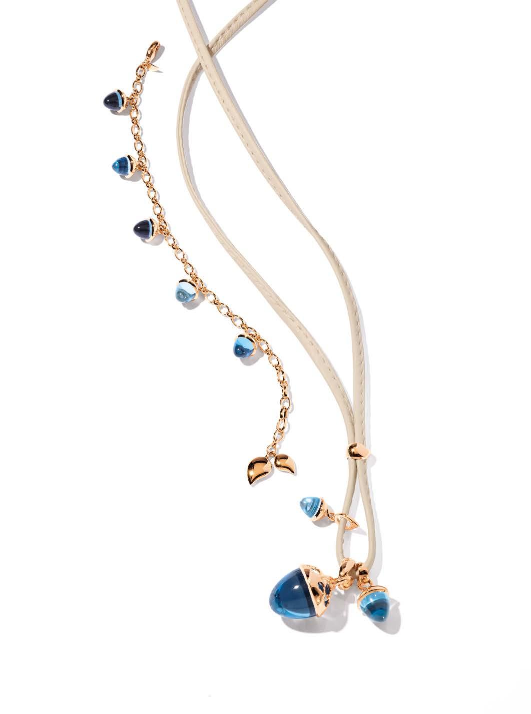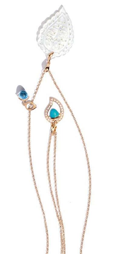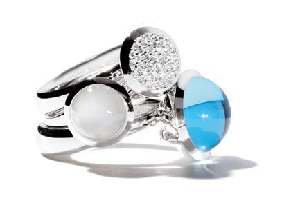 Playing with cool tones, ‘Ocean’ mesmerizes by combining pearlescent Moonstones that glow with unique depth, sparkling Diamonds, deep blue Topaz, and 18K white gold.