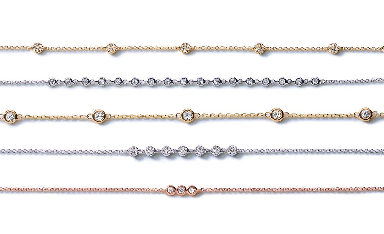 The diamond necklace offers a bit of a stretch for comfort, the band stretches to ensure a perfect fit every day, while the bracelets roll on effortlessly.