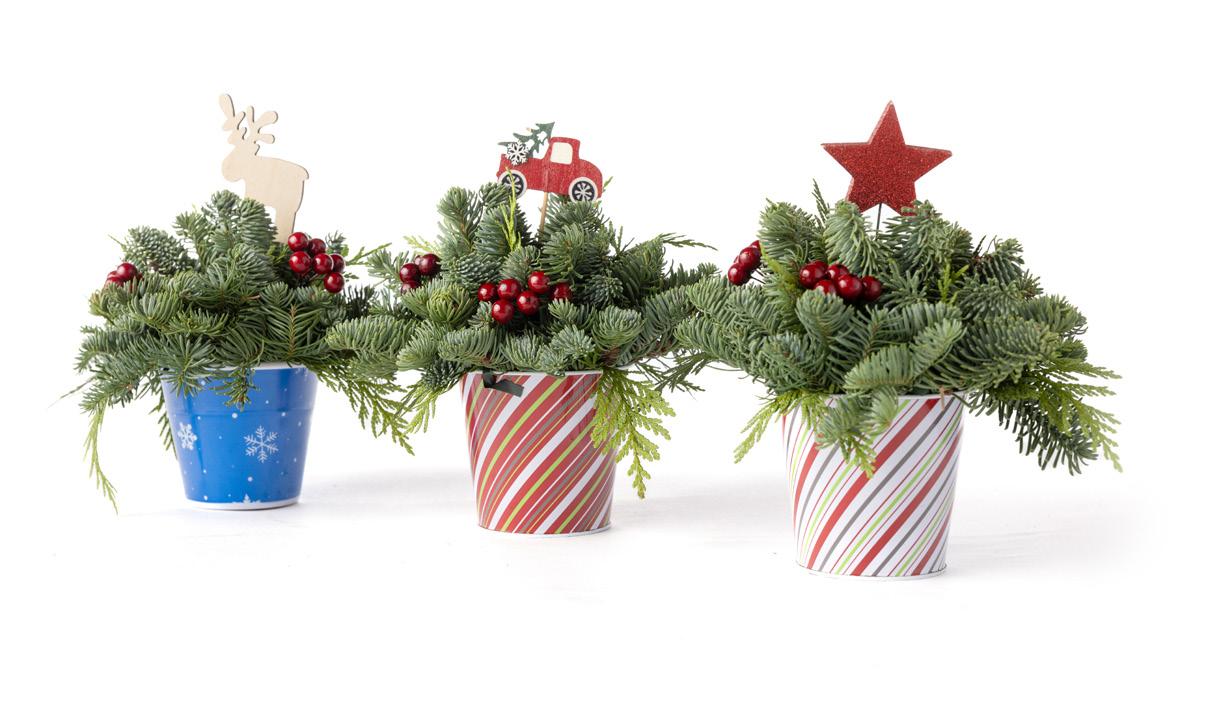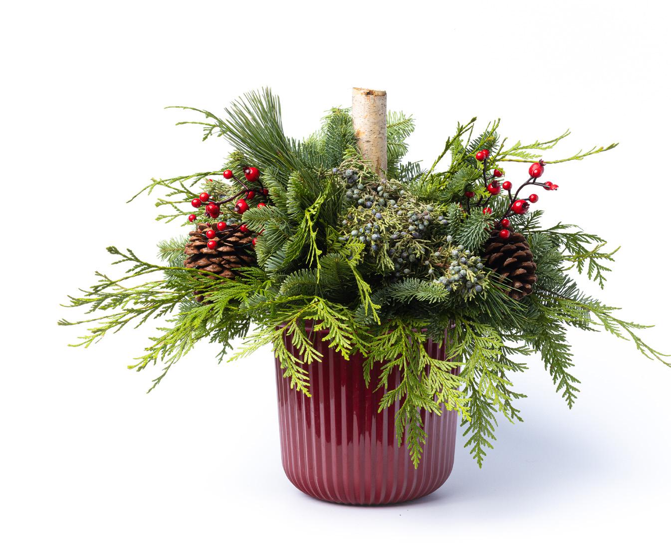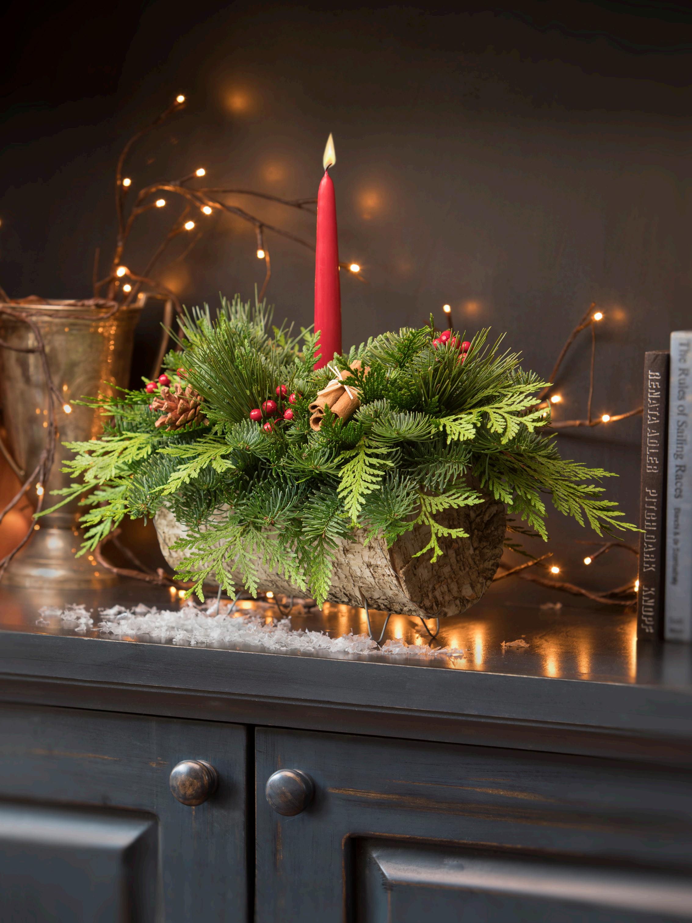 Nothing is better at bringing holiday spirit to a family table than our festive evergreen centerpieces. Whether by themselves, or in a sleigh, basket, bowl, or pail, these centerpieces provide a festive backdrop.