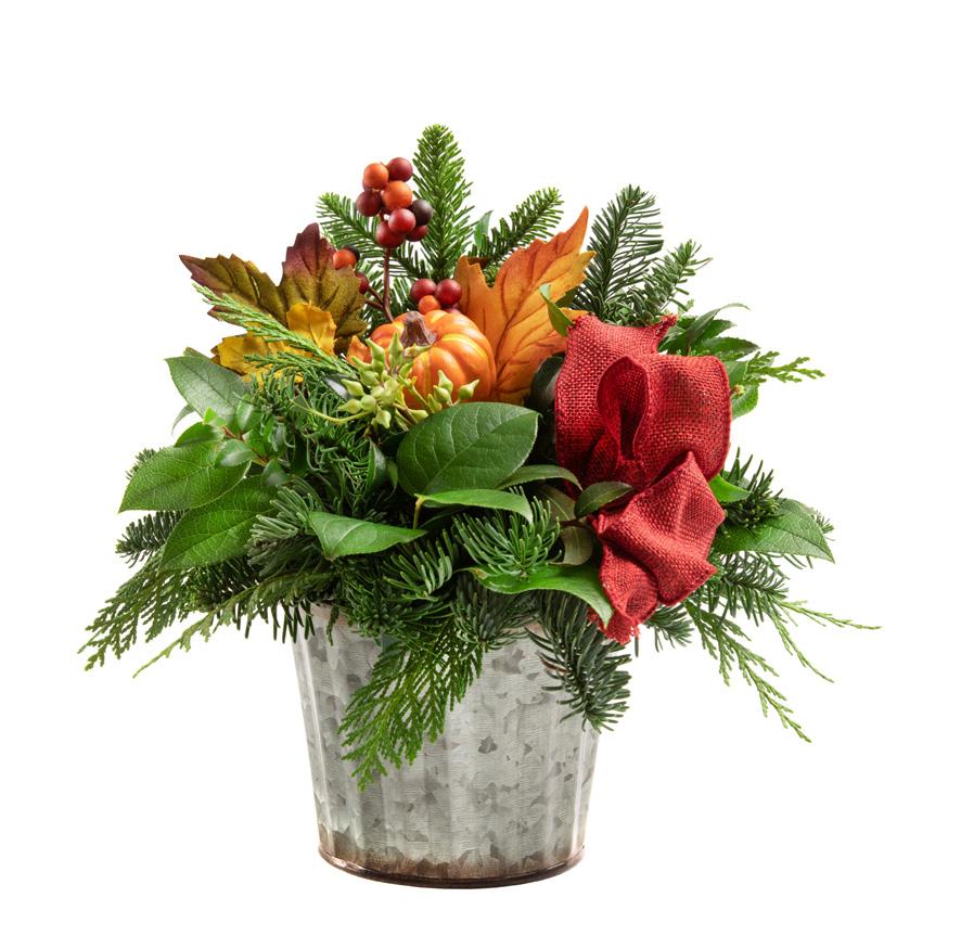 Our Thanksgiving Line offers festive, seasonal designs that seamlessly transition into the holidays. Featuring a fall basket, cornucopia, turkey, and tin, these versatile pieces can ship with early Christmas orders for a convenient seasonal feature. The tin and basket easily transform into Christmas décor with a simple pick swap, making them a perfect multi-season solution.