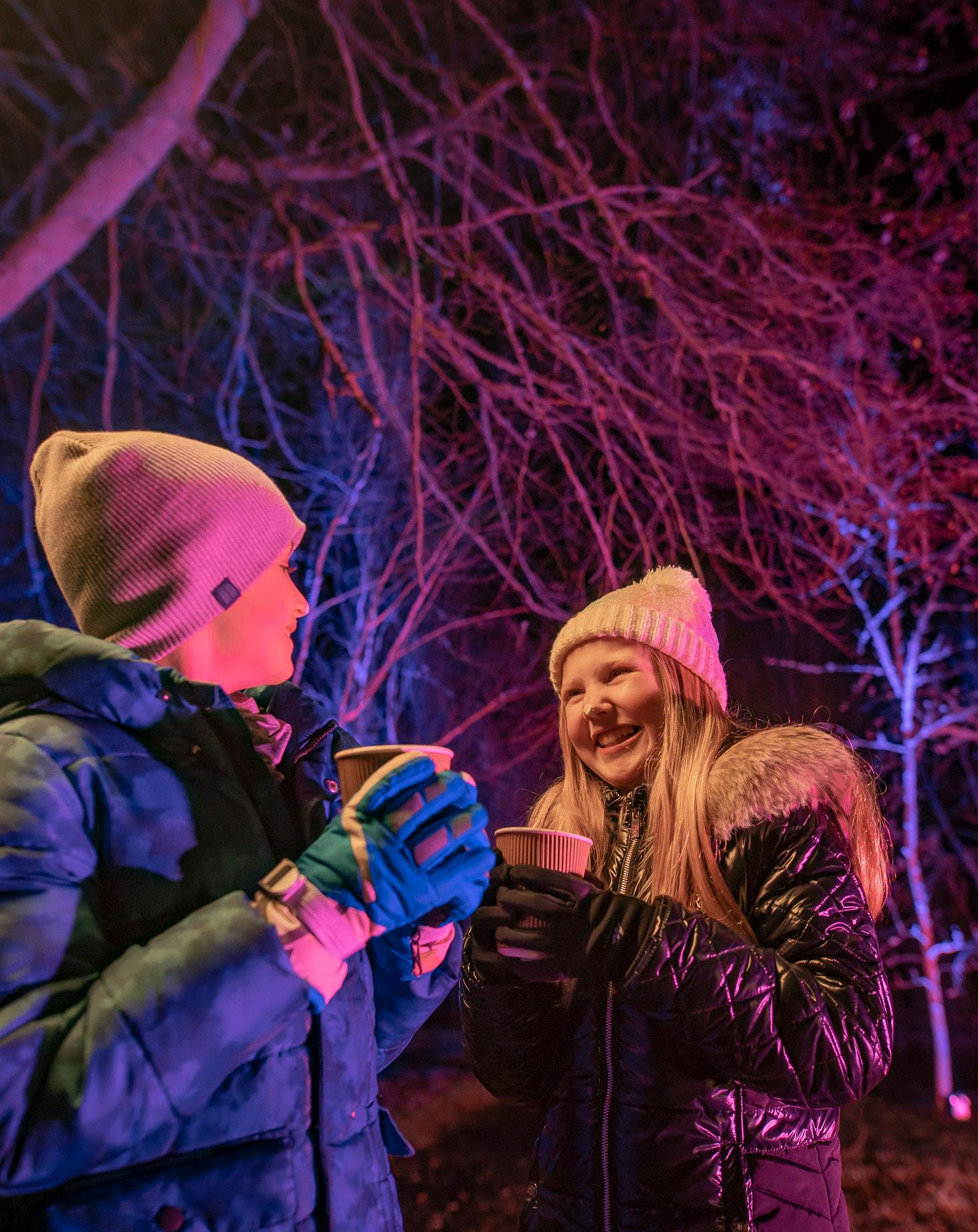 showcasing the beauty of nature itself. Follow the 1.5km illuminated pathway through the gardens and woods, where creative lighting brings nature to life, complemented by breathtaking soundscapes. Immerse yourself in the ethereal ambiance and encounter a symphony of twinkling lights, casting a spellbinding glow. Take your time and enjoy locally sourced food and drink available at the event in an unforgettable evening of wonder and enchantment.