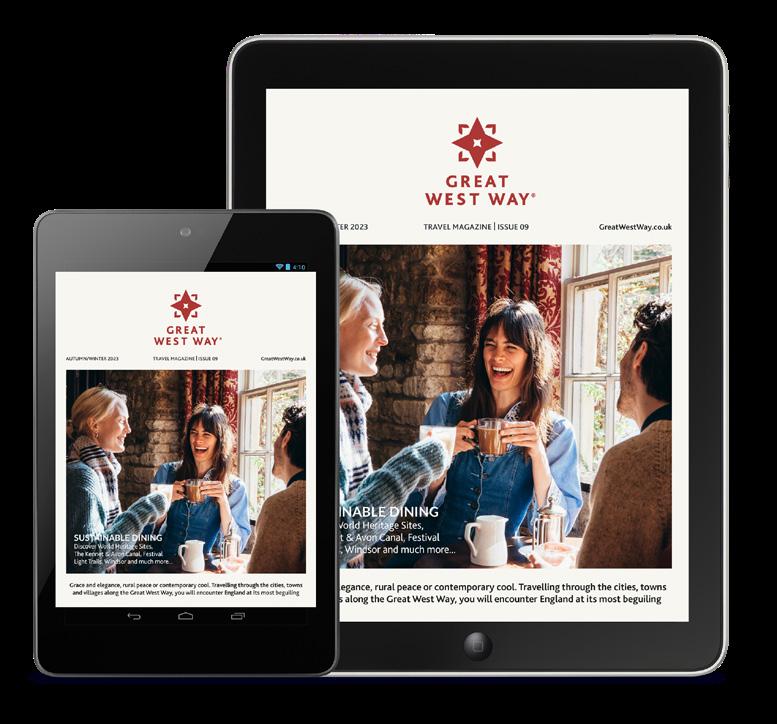 As the leaves change and the air turns crisp, it's time to cosy up with a cup of tea and our Autumn/Winter edition of the Great West Way Travel Magazine. We've been hard at work curating an issue that showcases the best of the region, from hidden historic gems to the enchanting festival light trails. Join us on page 8 for an exclusive interview with Steve Lewis, General Manager at Lainston House Exclusive Collection, and discover the story behind this stunning hotel. On page 14, we have the latest travel news on the Great West Way, including exciting plans for a historical celebration in Malmesbury and a charming countryside hotel. If you're a foodie, you won't want to miss page 18, where we highlight the best plant-based menus and vegan dishes along the Great West Way route. And on page 24, uncover the fascinating history of The Royal Mint, where every British coin has been produced for over a millennium. With so much to see and do, the Great West Way is the perfect destination for your next adventure. We hope this edition of the magazine inspires you to explore all that this remarkable region has to offer. Happy reading!
