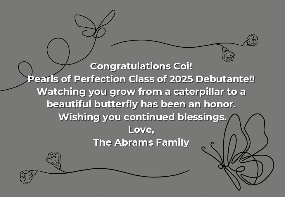 Greetings Parents, Family, Friends and well-wishers of the Pearls of Perfection 2025 Cotillion Class.