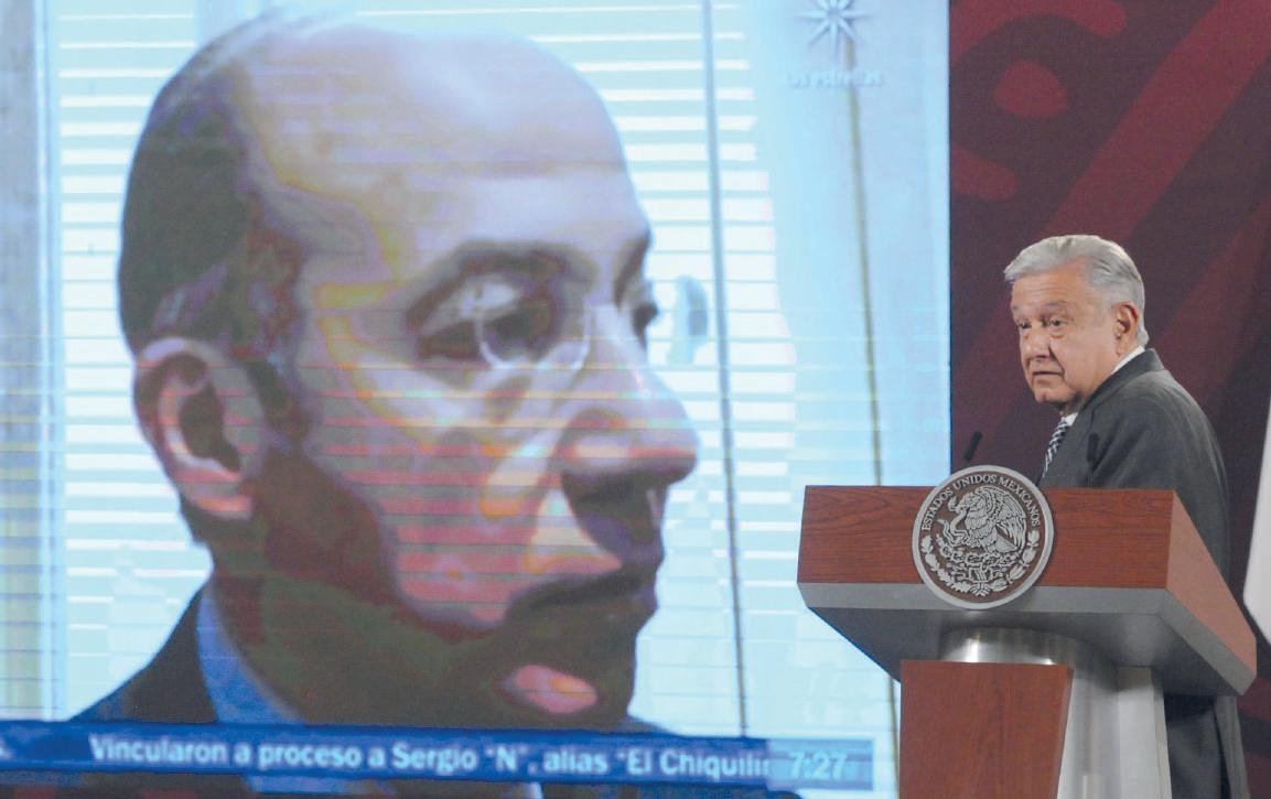 … Y LO RETA. Ayer en la mañanera, el presidente Andrés Manuel López Obrador criticó que Felipe Calderón defienda a su “mano derecha” Genaro García Luna descalificando el veredicto que lo halló culpable de 4 delitos relacionados con el narcotráfico. Lo convocó a presentar una denuncia contra EU. Y descartó que haya una persecución contra el expanista; aludió a que medios nacionales y foráneos no lo investigan. Foto: Cuartoscuro. Pág. 5