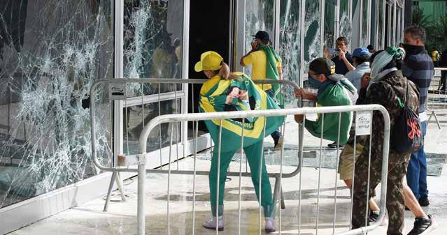 Al menos 150 seguidores del expresidente de ultraderecha brasileño Jair Bolsonaro fueron arrestados el domingo tras la invasión y saqueo de las principales sedes de los tres poderes del Estado en la capital Brasilia, según diferentes medios locales. Al caer la noche, la fuerza pública parecía retomar progresivamente el control de la situación, manteniendo a raya a manifestantes con agua lanzada desde tanquetas, aunque decenas de seguidores del expresidente seguían en las calles y la situación seguía siendo confusa. Numerosos países condenaron este domingo el asalto de simpatizantes del expresidente ultraderechista brasileño Jair Bolsonaro al Congreso, el Tribunal Supremo y el palacio presidencial, que algunos consideran un “intento de golpe de Estado” y “fascista”, y expresaron su apoyo inquebrantable al mandatario Luiz Inácio Lula da Silva.