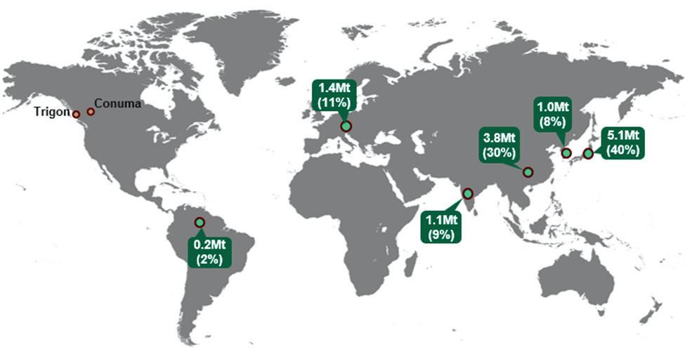 Conuma has an increasingly diverse range of customers to take advantage of supply and demand imbalances favoring increased pricing in different global markets. With decreased supply from Russia, Conuma has increasingly focused on Europe in recent years, despite a shipping distance disadvantage, because of the higher pricing paid for same grades of coals versus other global markets.