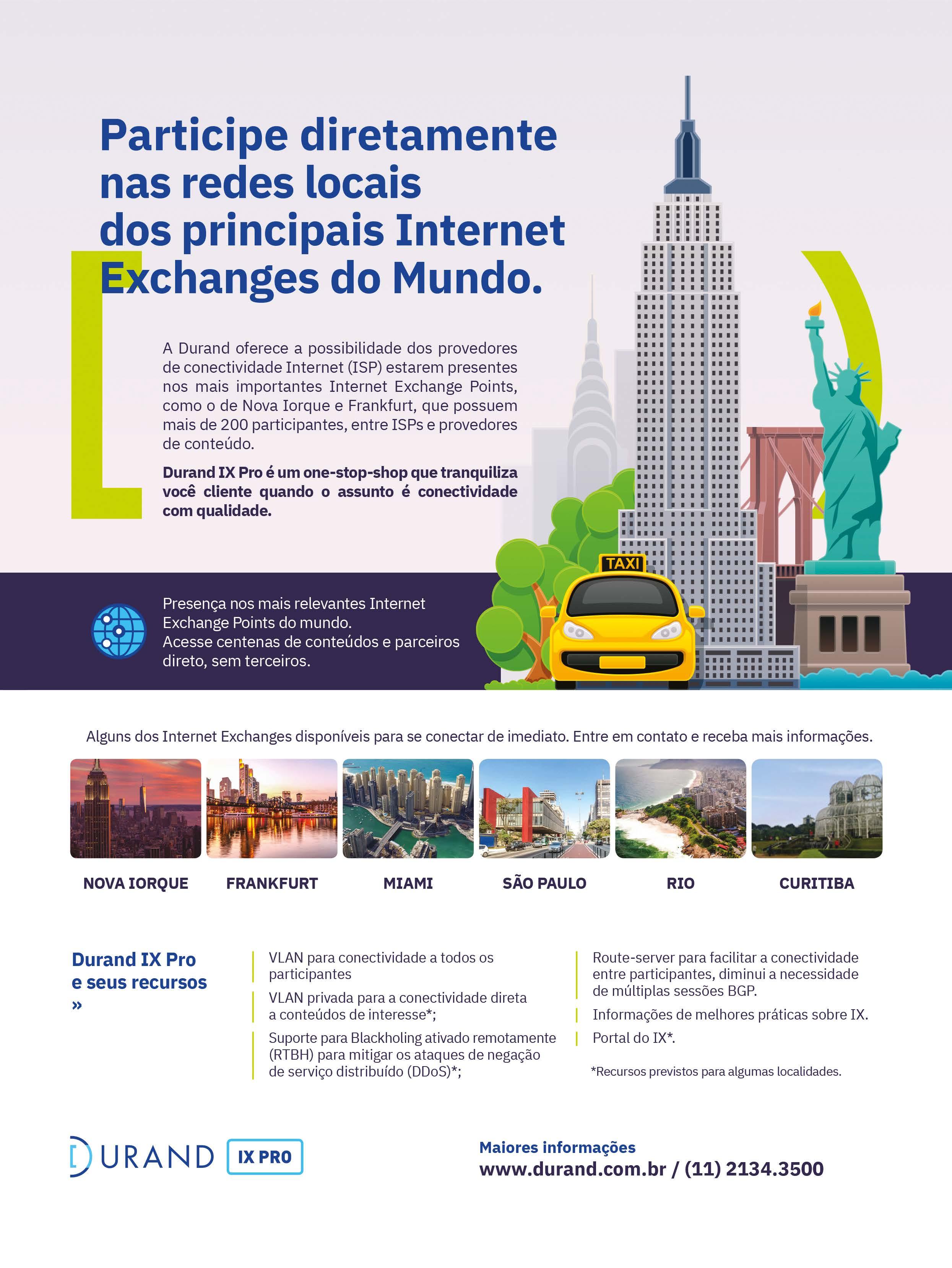Para 34% dos provedores que participam do IX.br, a presença na iniciativa diz respeito à melhora da qualidade dos serviços de internet. Já 32% afirmaram que o motivo para participação é a melhora da organização do tráfego de internet local. E 28% dos provedores que estão no IX.br afirmaram que o motivo é o acesso a CDN (do inglês Content Delivery Network), iniciativa crucial para centralizar os principais conteúdos acessados pelos usuários de internet, tais como os serviços de videochamada e streaming. •