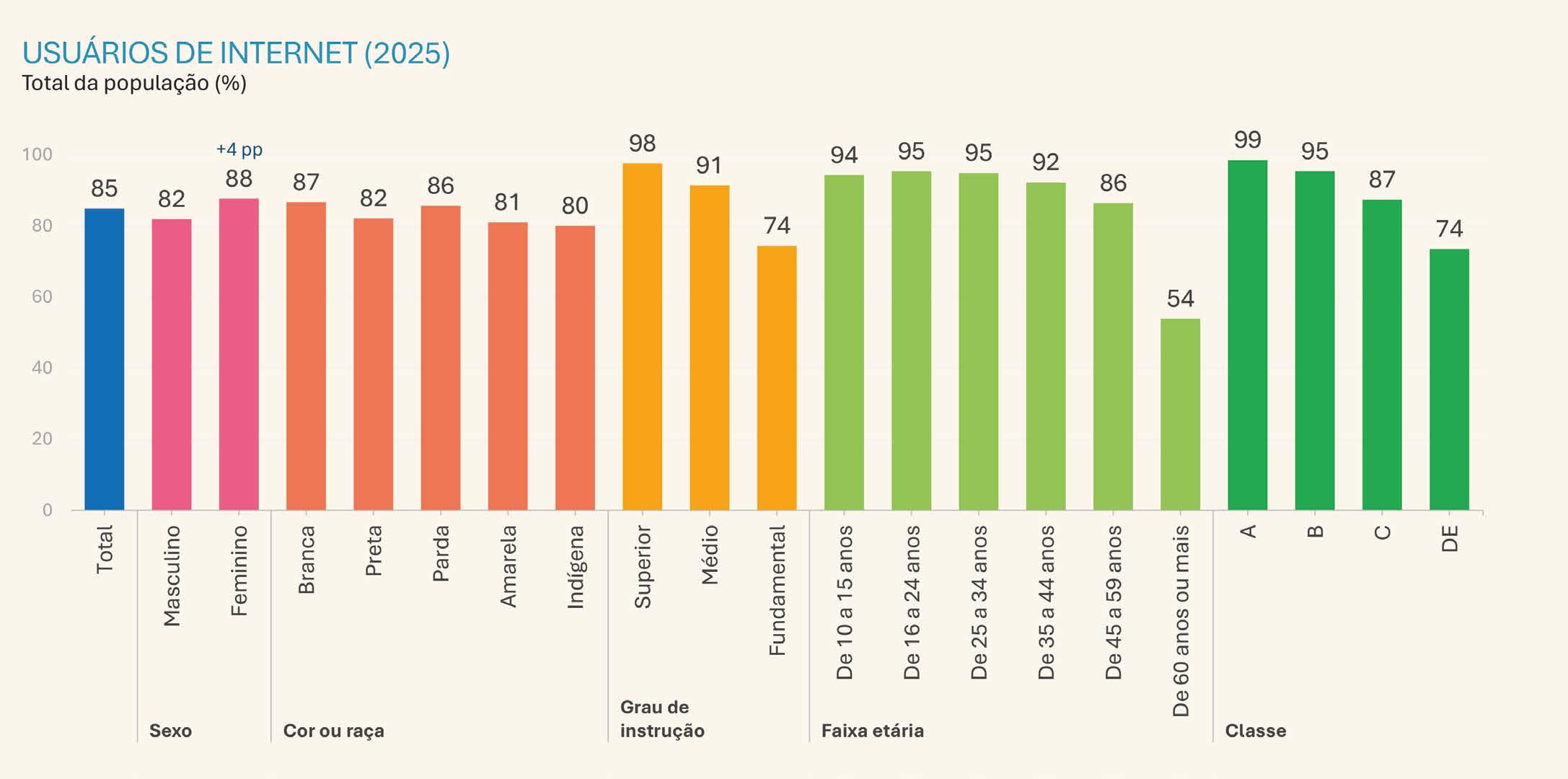 Fonte: CGI.br. (2025). Pesquisa sobre o uso das tecnologias de informação e comunicação nos domicílios brasileiros: TIC Domicílios 2025.