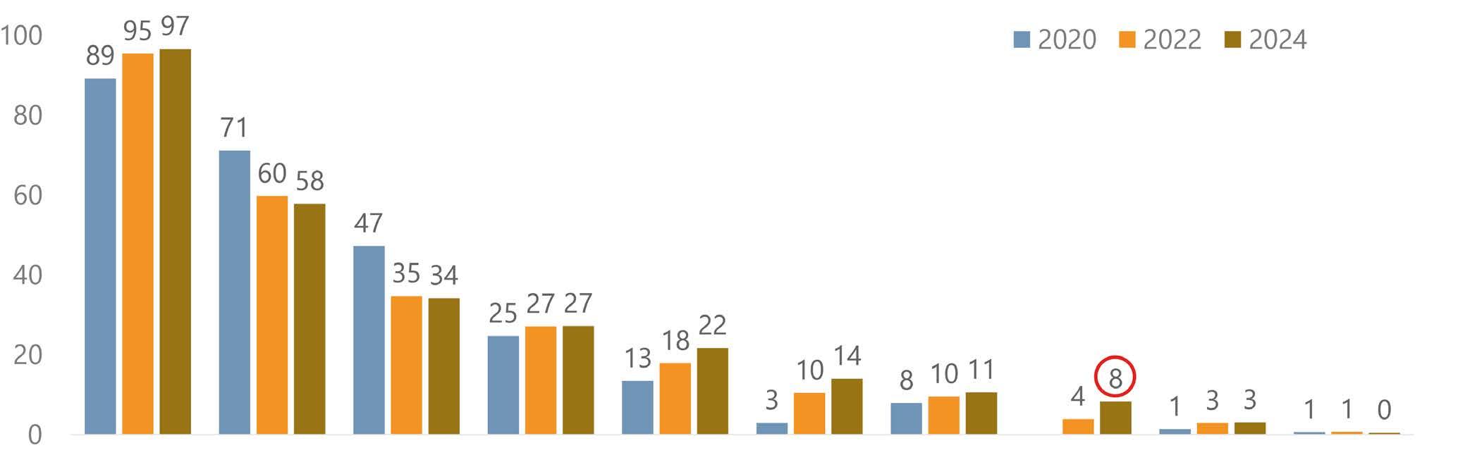 A preocupação com segurança também é patente, até porque os provedores podem ser vítimas e meios para diversos tipos de ataques cibernéticos. Em 2024, 70% dos ISPs utilizaram a equipe de operação da rede para tratamento dos casos de abuso ou incidentes de segurança – em linha com os 69% de 2022 e bem acima dos 45% de 2020.