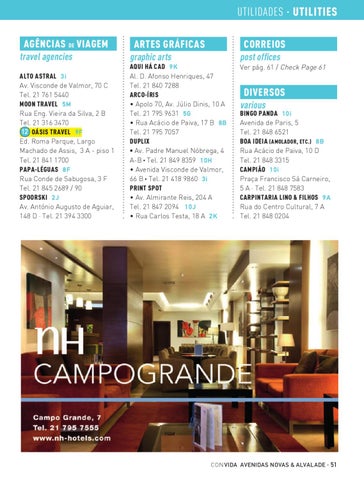 UTILIDADES · UTILITIES AGÊNCIAS DE VIAGEM travel agencies ALTO ASTRAL 3i Av. Visconde de Valmor, 70 C Tel. 21 761 5440 MOON TRAVEL 5M Rua Eng. Vieira da Silva, 2 B Tel. 21 316 3470 12 OÁSIS TRAVEL 9F Ed. Roma Parque, Largo Machado de Assis, 3 A - piso 1 Tel. 21 841 1700 PAPA-LÉGUAS 8F Rua Conde de Sabugosa, 3 F Tel. 21 845 2689 / 90 SPOORSKI 2J Av. António Augusto de Aguiar, 148 D · Tel. 21 394 3300