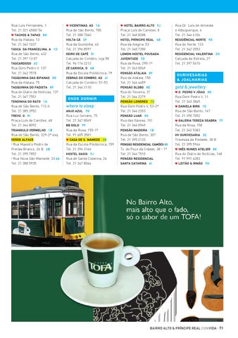 Rua do Diário de Notícias, 137 Tel. 21 347 7551 Tendinha do Rato 1A