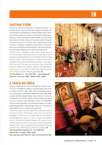 todos os dias / everyday 19h00 - 03h30 fado: seg e qua a partir das 21h / fado: mon and wed from 9pm bairro alto & príncipe real con vida · 17
