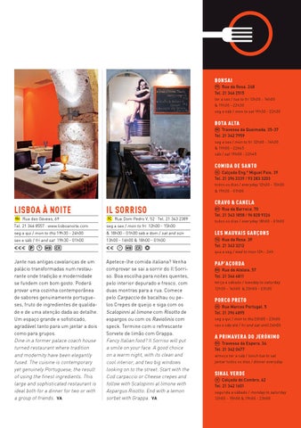 Cravo & canela 8H Rua da Barroca, 70 Tel. 21 343 1858 / 96 828 9326