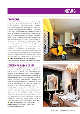 ter a sex / tue to fri 10h00 - 14h00 & 15h00 - 19h00 www.conceicaovascocosta.com bairro alto & príncipe real con vida · 9
