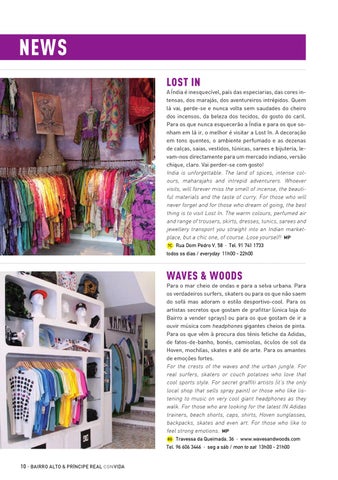 Waves & Woods Para o mar cheio de ondas e para a selva urbana. Para os verdadeiros surfers, skaters ou para os que não saem do sofá mas adoram o estilo desportivo-cool. Para os artistas secretos que gostam de grafittar (única loja do Bairro a vender sprays) ou para os que gostam de ir a ouvir música com headphones gigantes cheios de pinta. Para os que vêm à procura dos ténis fetiche da Adidas, de fatos-de-banho, bonés, camisolas, óculos de sol da Hoven, mochilas, skates e até de arte. Para os amantes de emoções fortes. For the crests of the waves and the urban jungle. For real surfers, skaters or couch potatoes who love that cool sports style. For secret graffiti artists (it’s the only local shop that sells spray paint) or those who like listening to music on very cool giant headphones as they walk. For those who are looking for the latest IN Adidas trainers, beach shorts, caps, shirts, Hoven sunglasses, backpacks, skates and even art. For those who like to feel strong emotions. MP 8G
