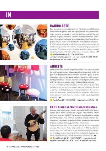 CCPE Centro de Criatividade Pró-Ensino Imagine uma escola super criativa com aulas de Música, Teatro, Dança, Belas Artes e Cursos de Línguas. Não estamos a falar do Fame, mas sim do CCPE, uma escola que oferece formação em várias áreas, para crianças e adultos. Desde aulas de instrumentos como tabla ou gaita-de-foles, workshops de escrita criativa, aulas de pintura, guionismo e muito mais. Imagine a school with music, drama, dance, art and languages classes. No, it’s not Fame and we’re not in NYC but here in Bairro Alto. The CCPE wants to get people doing what they enjoy most by providing training for kids and adults. Bagpipe lessons, creative writing, cabaret workshops, painting, etc. MP 7H