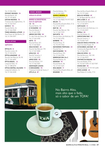 Rua do Teixeira, 1 Tel. 96 836 1649 Rua Cruz dos Poiais, 59