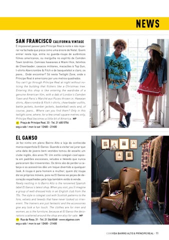 news É impossível passar pelo Príncipe Real à noite e não reparar na fachada que pisca como uma árvore de Natal. Quem entrar nesta loja, entra no guarda-roupa de autênticos filmes americanos, ou mergulha no espírito de Camden Town londrino. Camisas havaianas à Miami Vice, fatinhos de Cheerleader, casacos militares, macacões à Top Gun, t-shirts Abercrombie & Fitch e de basquetebol e claro, os jeans… Onde encontrar? Só nesta Twilight Zone, onde o Príncipe Real é americano por uns metros quadrados. You can’t go through Príncipe Real at night without noticing the building that flickers like a Christmas tree. Entering this shop is like entering the wardrobe of a genuine American film, with a dab of London’s Camden Town and Paris’s Marché aux Puces thrown in. Hawaian shirts, Abercrombie & Fitch t-shirts, cheerleader outfits, battle jackets, bomber jackets, basketball vests and, of course, jeans… Where can you find them? Only in this twilight zone, where, for a few small square metres only, Príncipe Real becomes a little bit of America. MP 6C
