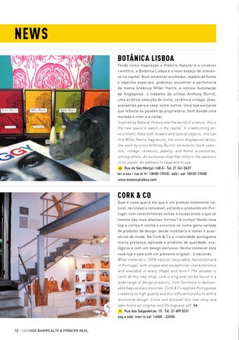 news botÂnica LISBOA Tendo como inspiração a História Natural e o universo científico, a Botânica Lisboa é o novo espaço de interesse na capital. Num ambiente acolhedor, repleto de flores e objectos especiais, podemos encontrar a perfumaria da marca britânica Miller Harris, a icónica iluminação da Anglepoise, o trabalho do artista Anthony Burrill, uma eclética selecção de livros, cerâmica vintage, jóias, acessórios para a casa, entre outros. Uma loja exclusiva que reflecte as paixões da proprietária. Sem dúvida uma morada a reter e a visitar. Inspired by Natural History and the world of science, this is the new space to watch in the capital. In a welcoming environment, filled with flowers and special objects, one can find Miller Harris fragrances, the iconic Anglepoise lamps, the work by artist Anthony Burrill, an eclectic book selection, vintage ceramics, jewelry, and home accessories, among others. An exclusive shop that reflects the passions of its owner. An address to keep and to use. 4D