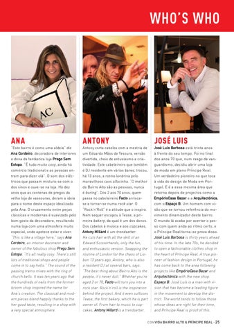 Antony corta cabelos com a mestria de um Eduardo Mãos de Tesoura, versão divertida, cheio de entusiasmo e criatividade. Este cabeleireiro que também é DJ residente em vários bares, trocou, há 13 anos, a rotina londrina pelo maravilhoso caos alfacinha. “O melhor do Bairro Alto são as pessoas, nunca é boring”. Dos 2 aos 70 anos, quem passa no cabeleireiro Facto arriscase a tornar-se numa rock star. O “Rock’n’Roll” é a atitude que o inspira. Nem sequer escapou à Tease, a primeira bakery, da qual é um dos donos. Dos cabelos à música e aos cupcakes, Antony Millard é um trendsetter. He cuts hair with all the skill of an Edward Scissorhands, only the fun, and enthusiastic version. Swapping the routine of London for the chaos of Lisbon 13 years ago, Antony, who is also a resident DJ at several bars, says: “The best thing about Bairro Alto is the people, it’s never dull.” Whether you’re aged 2 or 70, Facto will turn you into a rock star. Rock‘n’roll is the inspiration behind the project. And it even suffuses Tease, the first bakery, which he is part owner of. From hair to music to cupcakes, Antony Millard is a trendsetter.