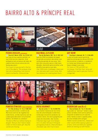 Rua de S. Bento, 297B · Tel. 93 322 1221 Um loja em que apetece perder-se nas histórias dos objectos. Este antiquário tem um pouco de tudo, da cadeira futurista às obras de arte. Venha descobrir. You’ll want to lose yourself in the history of the objects. This antiques shop has a bit of everything, from futurist chairs to artworks. Come and see.