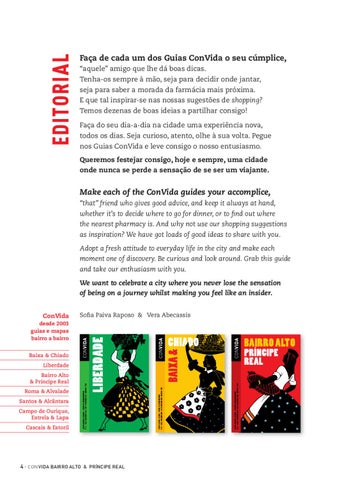 Faça de cada um dos Guias ConVida o seu cúmplice, “aquele” amigo que lhe dá boas dicas. Tenha-os sempre à mão, seja para decidir onde jantar, seja para saber a morada da farmácia mais próxima. E que tal inspirar-se nas nossas sugestões de shopping? Temos dezenas de boas ideias a partilhar consigo! Faça do seu dia-a-dia na cidade uma experiência nova, todos os dias. Seja curioso, atento, olhe à sua volta. Pegue nos Guias ConVida e leve consigo o nosso entusiasmo. Queremos festejar consigo, hoje e sempre, uma cidade onde nunca se perde a sensação de se ser um viajante.