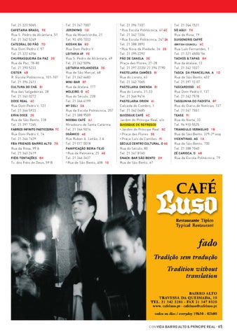 Tel. 21 396 7307 • Rua Escola Politécnica, 41 4 C Tel. 21 342 7304 • Rua Escola Politécnica, 247 2A Tel. 21 388 3893 • Rua Nova da Piedade, 36 2 E Tel. 21 395 2292
