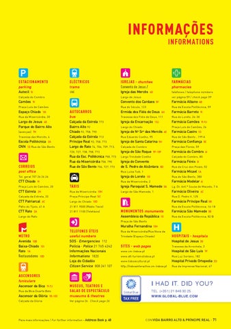 useful numbers SOS · Emergencies 112 Polícia · Police 21 765 4242 Informações Nacionais Informations 1820 Loja do Cidadão Citizen Service 808 241 107