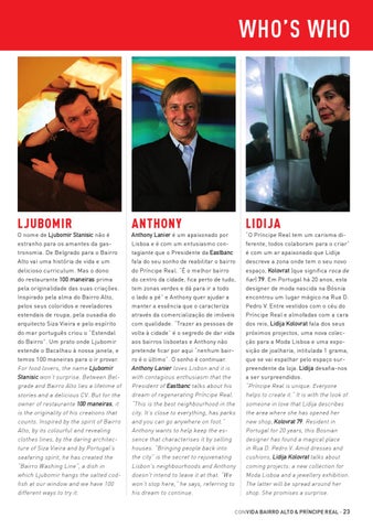 O nome de Ljubomir Stanisic não é estranho para os amantes da gastronomia. De Belgrado para o Bairro Alto vai uma história de vida e um delicioso curriculum. Mas o dono do restaurante 100 maneiras prima pela originalidade das suas criações. Inspirado pela alma do Bairro Alto, pelos seus coloridos e reveladores estendais de roupa, pela ousadia do arquitecto Siza Vieira e pelo espírito do mar português criou o “Estendal do Bairro”. Um prato onde Ljubomir estende o Bacalhau à nossa janela, e temos 100 maneiras para o ir provar. For food lovers, the name Ljubomir Stanisic won’t surprise. Between Belgrade and Bairro Alto lies a lifetime of stories and a delicious CV. But for the owner of restaurante 100 maneiras, it is the originality of his creations that counts. Inspired by the spirit of Bairro Alto, by its colourful and revealing clothes lines, by the daring architecture of Siza Vieira and by Portugal’s seafaring spirit, he has created the “Bairro Washing Line”, a dish in which Ljubomir hangs the salted codfish at our window and we have 100 different ways to try it.