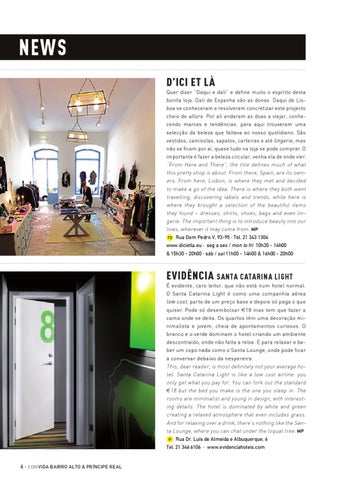 news D’Ici et Là Quer dizer “Daqui e dali” e define muito o espírito desta bonita loja. Dali de Espanha são as donas. Daqui de Lisboa se conheceram e resolveram concretizar este projecto cheio de allure. Por ali andaram as duas a viajar, conhecendo marcas e tendências, para aqui trouxeram uma selecção da beleza que faltava ao nosso quotidiano. São vestidos, camisolas, sapatos, carteiras e até lingerie, mas não se ficam por aí, quase tudo na loja se pode comprar. O importante é fazer a beleza circular, venha ela de onde vier. “From Here and There”, the title defines much of what this pretty shop is about. From there, Spain, are its owners. From here, Lisbon, is where they met and decided to make a go of the idea. There is where they both went travelling, discovering labels and trends, while here is where they brought a selection of the beautiful items they found – dresses, shirts, shoes, bags and even lingerie. The important thing is to introduce beauty into our lives, wherever it may come from. MP 7D