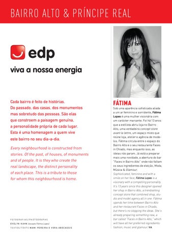 Sob uma aparência sofisticada aliada a um ar feminino e sorridente, Fátima Lopes é uma mulher visionária com um carácter marcante. Foi há 13 anos que a estilista abriu loja no Bairro Alto, uma verdadeira concept store avant la lettre, um espaço misto que reúne loja, atelier e agência de modelos. Fátima circula entre o espaço do Bairro Alto e o seu restaurante Faces in Chiado, mas enquanto isso, as ideias não param. Já está a preparar mais uma novidade, a abertura do bar “Faces in Bairro Alto” onde não faltam os seus ingredientes de eleição, Moda, Música & Glamour. Sophisticated, feminine and with a smile on her face, Fátima Lopes is a visionary with a compelling personality. It’s 13 years since this designer opened her shop in Bairro Alto, a trendsetting concept store that combined shop, studio and model agency all in one. Fátima spends her time between Bairro Alto and her restaurant Faces in Chiado, but there’s no stopping the ideas. She’s already preparing something new, a bar called “Faces in Bairro Alto,” which will have all her preferred ingredients: fashion, music and glamour. VA