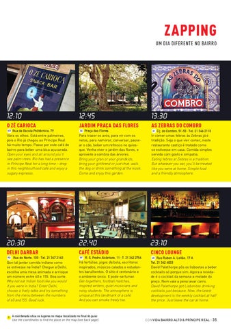 6I Cç. do Combro, 51-53 · Tel. 21 346 2110 Ir comer umas febras às Zebras já é tradição. Seja o que vier comer, neste restaurante castiço é tratado como se estivesse em casa. Comida simples servida com gosto e simpatia. Eating febras at Zebras is a tradition. But whatever you eat, you’ll be treated like you were at home. Simple food and a friendly atmosphere.