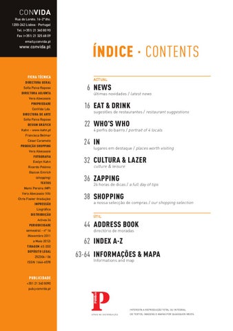 Vera Abecassis PROPRIEDADE ConVida Lda. DIRECTORA DE ARTE Sofia Paiva Raposo DESIGN GRÁFICO Kahn - www.kahn.pt Francisca Belmar César Caramelo PRODUÇÃO SHOPPING Vera Abecassis FOTOGRAFIA Evelyn Kahn Ricardo Polónio Glaicon Emrich (shopping) TEXTOS Mami Pereira (MP) Vera Abecassis (VA) Chris Foster (tradução) IMPRESSÃO