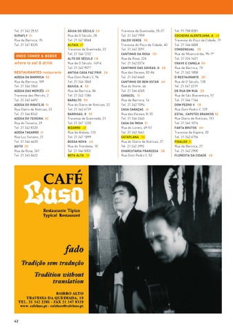 Rua da Barroca, 70 Tel. 21 343 1858 D Restaurante 2 D