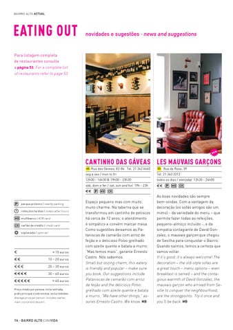 Para listagem completa de restaurantes consulte a página 53. For a complete list of restaurants refer to page 53.
