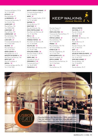 Rua das Salgadeiras, 28 Tel. 21 342 1942 Puro Bairro Alto 4 H