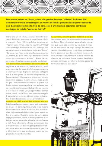 E, surpresa, o bairro passou também a ter dia. Nos últimos anos, um novo comércio aventurou-se no Bairro. Novo, alternativo, especializado: mercerias que agora são gourmet ou bio, lojas de música, de sportswear, de roupa vintage, de acessórios fashion. Ou cabeleireiros, craft shops, embaixadas Lomo, galerias, e lojas de gadgets neo-turisticos. E, claro, muitas delas prolongam os seus horários de abertura até mais tarde do que no resto da cidade – pois este continua a ser o bairro da noite, apesar de ter mudado da noite para o dia.•