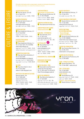 Para obter informações sobre a programação, consultar as instituições directamente. For details about what’s on contact the institutions directly.
