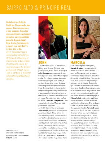 Bairro alto & Príncipe real Cada bairro é feito de histórias. Do passado, das casas, dos monumentos e das pessoas. São elas que constroem a paisagem genuína, a personalidade própria de cada lugar. Esta é uma homenagem a quem vive este bairro no seu dia-a-dia. Every neighbourhood is constructed from stories. Of the past, of houses, of monuments and of people. It is they who create the real landscape, the distinct personality of each place. This is a tribute to those for whom this neighbourhood is home.
