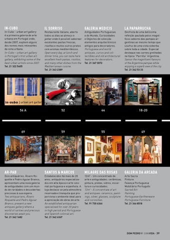 Dois antiquários, Álvaro Roquette e Pedro Aguiar Branco, apresentam uma nova galeria de antiguidades com um mundo de raridades e descobertas preciosas à sua espera. Two antiquarians, Álvaro Roquette and Pedro Aguiar Branco, present a new antiques gallery where a world of rarities and precious discoveries await you. Tel. 21 342 1682